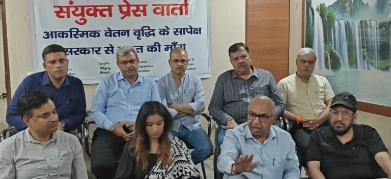 ग्रेटर नोएडा, रफ़्तार टूडे । ग्रेटर नोएडा के औद्योगिक परिदृश्य में इन दिनों हलचल तेज हो गई है। हाल ही में श्रमिकों के वेतन और ओवरटाइम दरों में हुई वृद्धि के बाद अब क्षेत्र के उद्यमियों ने खुलकर अपनी नाराजगी जाहिर की है। ग्रेटर नोएडा प्रेस क्लब के कॉन्फ्रेंस हॉल में आयोजित संयुक्त प्रेस वार्ता … Continue reading Breaking News : “उद्यमियों की हुंकार या मजबूरी की पुकार?, ग्रेटर नोएडा में वेतन वृद्धि पर भड़का उद्योग जगत, बोले- ‘पीठ में छुरा घोंपा गया!’”, संयुक्त प्रेस वार्ता में MSME उद्यमियों ने खोला मोर्चा, सरकार से राहत और संतुलन की मांग तेज